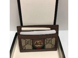 The look of luxury! Italian made GG Supreme canvas Gucci Ophidia Credit Card Case with leather trim.