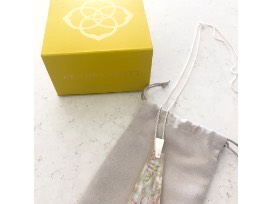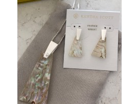 Start your summer off in style! This beautiful set from Kendra Scott is sure to make your outfit pop! Includes: An adjustable pendant necklace with a sliding adjuster so you can make it as long or short as you like! Matching set of earrings- these are lightweight yet sure to make a statement! Materials: bright silver metals w/ white abalone shell