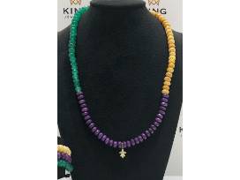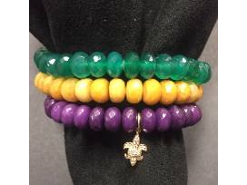 This spectacular piece was custom-made to celebrate Mardi Gras, but is meant to be worn year-round. It is by acclaimed jewelry designer Sydney Evan and can be worn as a necklace or bracelet. It measures 20" and features 8 mm faceted rondelle beads (eggplant purple faceted JADE, yellow faceted OPAL and green faceted ONYX) and accented with a 14-kt yellow gold and DIAMOND fleur de lis charm. Sydney Evan jewelry routinely adorns the most fabulous women in the world of celebrity, including P!NK, Emma Roberts, Kate Bosworth, Jennifer Lawrence, Jennifer Hudson, Roselyn Sanchez, Kim Kardashian, Sofia Vergara and many others. PICK UP ONLY.