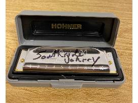 Vintage "I Don't Want to Go Home" vinyl and Hohner Special 20 harmonica in C major signed by South Side Johnny at his MPAC performance in March 2019. Harmonica comes in a grey case with instructions and an online code for 30 days of free lessons. The vinyl cover shows age and significant wear and tear on the spine and edges. The sleeve is yellowed from age. Vinyl record will be shipped to winner in a record mailing box. MPAC is not responsible for damage to the items that could occur in transit or upon removal from box by the recipient. Value represents Fair Market Value unsigned. Certificate of Authenticity unavailable.