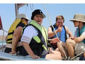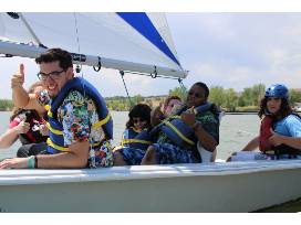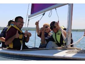 Our adaptive partnership with Developmental Pathways hosts 25+ individuals on the water during multiple sailing outings. Developmental Pathways support individuals with disabilities by partnering to provide expertise, support, and advocacy in their pursuit of a meaningful life.