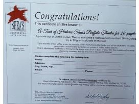 - A tour of Historic Shea's Buffalo Theatre for 20 People with Shea's Restoration Consultant
