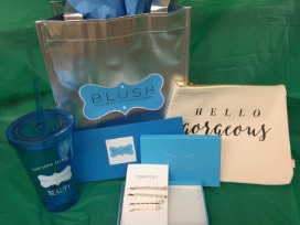 Grab Bag including Cosmetic bag, Hair Clips and Tumbler with straw.