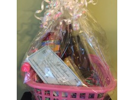 Basket with Summer Fun Items: Bubbles, Chalk, Tumbler