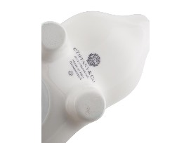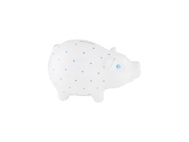 Creme and blue hand-painted ceramic piggy bank with polka dot motif throughout, coin slot at top and rubber stopper and brand stamp at underside, manufactured by Este Ceramiche, retailed by Tiffany & Co. Includes box. Made in Italy.