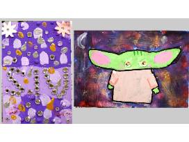 One artwork per student is available for sale, at a flat rate of $15. Simply enter the QUANTITY you wish to purchase (I.e. 1 student = 1 artwork). For privacy concerns, we were not allowed to label the artwork with the student names on the front (they are in the back). Have a little fun with your child and flip thru the pictures to guess which is their's. and your child may show you which is their's!