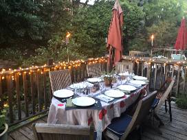 Enjoy our deck and backyard as we host you and four other guests for dinner and drinks, while doing so safely.