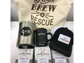 - Grounds & Hounds Coffee Co. Good Brew Bundle, includes: 1 airtight coffee canister, 1 key to happiness mug, 1 canvas tote bag, 1 3-blend starter kit (morning walk, alpha blend, paper + slippers), 1 classic G & H cap.