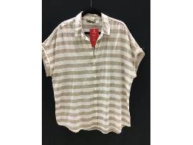 1NEW - Peyton Jenson - Spenser Stripe Sand/White Blouse - Linen Cotton - Machine Wash Cold - XL