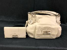 1NEW Coach Kri leather East-West tote in chalk with a matching wallet and dust cover
