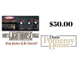 - $50 gift certificate to Don's Lighthouse Grille or Don's Pomeroy House.