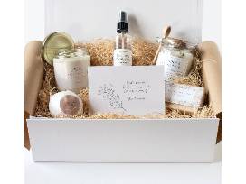 GIFT CONTENTS: Full size 8oz Lavender & Eucalyptus bath salts beautifully scented in a farmhouse glass jar with a small natural wood spoon included for ease of use at bath time, Handmade 9oz Fresh Cotton 100% soy wax candle in a glass jar with a gold metal lid (Made in the USA in small batches from a woman-owned maker in California), Shea Honey Oat scented hand-cut certified organic soap, Refreshing Tea Tree Eucalyptus floral water spray, Extra large 5oz Oatmeal Milk & Honey scented handmade bath bomb.