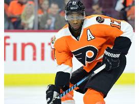 - hockey puck autographed by former Flyers player #17 Wayne Simmonds