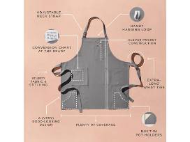 - Handy hanging loop: It's specially placed inside the bib so you can hang your apron a little bit higher-this helps keep it from dangling on the ground.