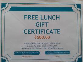 Food Service Consultants would like to treat your child to lunch during the 2021-2022 school year with this Free Lunch gift certificate worth $500!