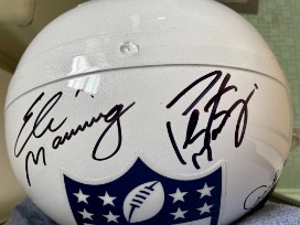 This Riddell replica helmet has been personally hand-signed by Peyton, Eli, and their father, Archie Manning. It is officially licensed by the National Football League and comes with an individually numbered, tamper-evident hologram from Fanatics Authentic. To ensure authenticity, the hologram can be reviewed online.
