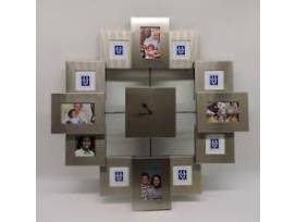 This clock and photos frame makes a great gift of great memories with frames for twelve (12) photos of loved ones (four 2 x 3" and eight 2 x 2") and a clock, which requires one AA battery (not included).