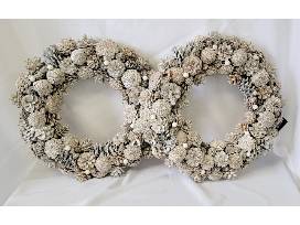 From Backbone Home in Festus, this pair of 18" wintery pinecone wreaths for interior or exterior home decor.
