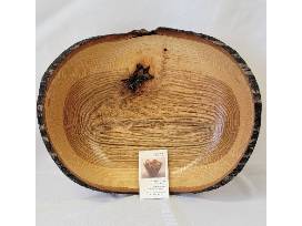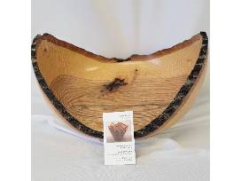 From professional woodturner, Terry Eiler, this uniquely-shaped large handmade oak bowl with bark edging, measures approximately 12" across the high sides and 10" across the low sides. Exquisite!