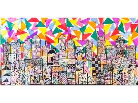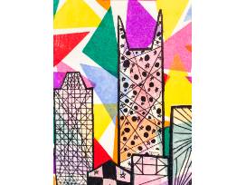 Hand sketched buildings of the Nashville skyline drawn by each 3rd grade student.