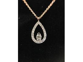 - 14 karat Rose Gold Teardrop Diamond Pendant secured on a 14 karat Rose Gold Chain