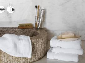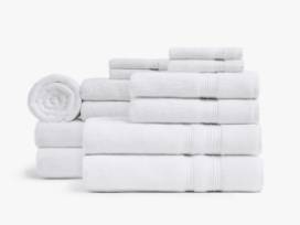 The easiest way to upgrade your bathroom, this bundle includes our most popular bath items in one simple set. What's Included: 4 x Bath Towel 4 x Hand Towel 4 x Washcloth 1 x Tub Mat 2 x Parachute Totes Made of 100% long-staple Turkish cotton. Towels feature a ribbed dobby design for a clean modern look. Machine wash cool using mild, liquid Laundry Detergent. Do not bleach. Tumble dry low. Use Wool Dryer Balls instead of dryer sheets. Remove promptly. Our towels are free of harmful synthetic dyes, making them safer for you and healthier for the planet, but more susceptible to discoloration when exposed to certain harsh chemicals. If you're following a skincare routine that includes ingredients such as benzoyl peroxide, we recommend white towels. Made in Turkey. Our Story We believe that when we take care of our home, it takes care of us. That's why we make premium quality sheets, towels, robes, rugs and all things soft and wonderful.