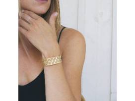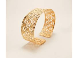 The Leonard cuff has been casted out of a vintage ribbon lace, made in solid brass plated to 24K gold, handmade in New York with recycled metal and made with an ethical process. Adjustable - one size fits all. Width 1" (2.5cm) Camille D Camille is a creature of invention and hand work. Her career began in haute couture, trend offices and lingerie shows. Deep down, she wanted to create with her hands. Shortly after moving to New York from France she found pleasure learning different techniques of craftsmanship. She later picked up another passion, while working in Lingerie: collecting and obsessing over vintage lace. She soon merged her two passions to create a unique modern jewelry line by casting antique lace. Camille is constantly creating, experiencing, inventing new techniques, bringing to life new jewelry adornments never seen. Stay tuned!