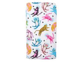 Blast off to sleep in this space themed kitty crib sheet! Printed on 100% organic cotton, this print is sure to delight future astronauts and emerging cat aficionados alike.