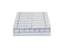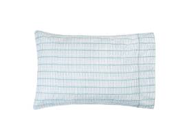 300 thread count cotton percale, block-printed. Hand-stitched detail on pillow cases and flat sheet. Machine wash.