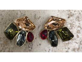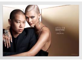 Gold-plated brass Atelier Swarovski x Jason Wu mosaic earrings featuring crystal embellishments and clip-on closures. Jason Wu has become a household name in the United States, and his creations are a favorite with America's recent and much favored First Lady, Michelle Obama. Jason Wu combines his signature impeccable elegance with a dash of color and opulence for his latest collection for Atelier Swarovski. The delicate yet decadent pieces are rendered in jet black crystal and the more striking Lava with its fuchsia, pink and siam crystals offset by a steely gunmetal finish. Wu's collection features earrings that drip with crystal and magnificent beaded statement necklaces finished with ribbons for a feminine touch.