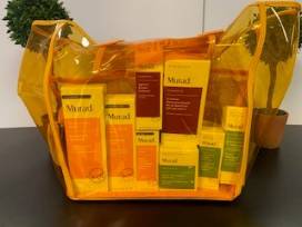 The perfect Murad products for beautiful and healthy skin. This clear beach bag includes Essential C Cleanser; Essential C Toner; Rapid age Spot & Pigment Lightening Service; Retrieval Youth Renewal Eye Cream; Retinal Youth Renewal Serum; Night Fix Enzyme Treatment; Invisiblur SPF 30; and a Yoga bag.