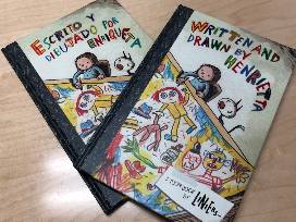 1Autographed copies of Written and Drawn by Henrietta, as well as its Spanish version, Escrito y Dibujado por Enriqueta is about Henrietta learning to draw the story of a brave young girl, a three-headed monster, and an impossibly wide world of adventure. Reading level for Grades 2-3. This English/Spanish book set was donated by UNIS Alumni parent Francois Mouly and Toon Books.