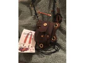 This is the highly sought after Goertzen leather fly fishing lanyard. It simplifies basic fly fishing equipment, holding it conveniently around your neck and at your fingertips with 5 attachment points, forceps holster, leader and license storage pocket, tippet bobbin, floatant holder, belly strap, and foldout fly case/holder.