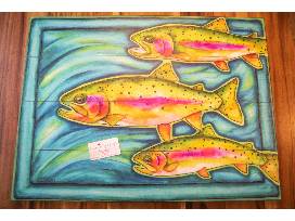 Original hand-painted trout print on wood, created by Bitterroot artist Karen Savory. Her art expresses the joy she feels when wandering near her mountain home. Always surrounded by her surroundings, her bright and colorful paintings celebrate nature at its finest.