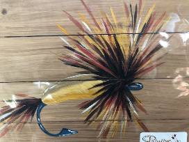Hand-painted fly: oil painting on natural wood.