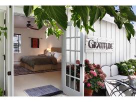 Enjoy all that Sonoma Valley has to offer while at Terraplane Farm. Your private guesthouse is set amidst a historic, five-acre poultry farm that has been reimagined as an art and garden sanctuary. The beautifully appointed guest house is furnished with family antiques and contemporary art. While sipping a glass of local wine, your host, artist Peter Hassen, will walk you through his studio and share his latest works. Garden designer and botanical expert, Louise Hassen, will lead you on a tour through the grounds, which include agave, kitchen, ornamental and apothecary gardens. Historic Sonoma Plaza, with its boutique shops, galleries, restaurants and tasting rooms, is just minutes away.