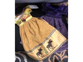 Beautiful, thick, rustic hand-sewn towels by Carol Schott. These would look great on your oven, or in a cabin. Cute and creative design.