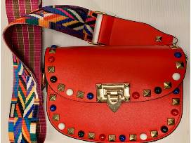 Add a pop of color to any outfit with this fun little Diophy front-studded and bead decor handbag with colorful woven strap!