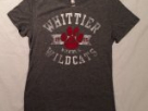 Show your Whittier spirit with this grey Wildcats T-shirt (ladies' cut size L) and large Whittier Wildcats duffle bag. Plenty of extra pockets, shoulder strap and handles that velcro together. Also included is a black "Whittier Wildcats" water bottle. Donors: Adcraft & Whittier PTA