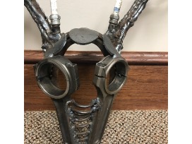 Deer sculpture made out of automotive parts - by Kelly Vaughn Stevens. Donated by Shelby Knight.