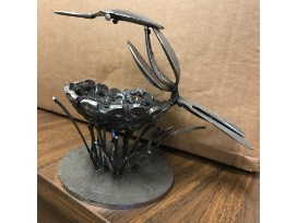 Silver sculpture by Kelly Vaughn Stevens. Donated by Shelby Knight.