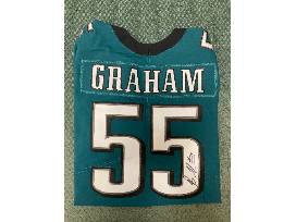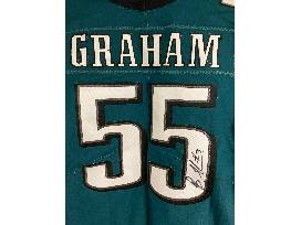 This item includes an autographed Philadelphia Eagles Jersey, signed by defensive end, Brandon Graham.