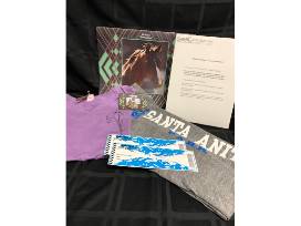 Santa Anita Day at the Races - 2 valet Parking passes, Trackside box seats for 6, Club house admission, Calendar, Women's T-Shirt (medium), Women's Sweatpants (large) - sizing runs small