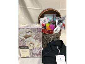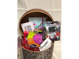 Everything for the Female Graduate - Floral Spectrum Journal, Brookstone "Fom" Phone Stand, 4 gift cards to In-N-Out Burger, $50 Visa Gift Card, Guess? Silver and Black Locking Bracelet, One Blaze Pizza gift card (Expires June 30, 2020) a set of Butter Nail Polish, Hipster Nail file, White Sierra Medium Zip Up Workout Jacket, $25 Bloomfield Creamery gift certificate & Memory Box.
