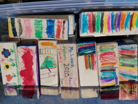 The classic game Jenga was built in large form for use in the yard. Each block is colored and decorated by one of the Pre-Kindergarten 3 Day Students. Your family will enjoy playing this outdoor version all year round!