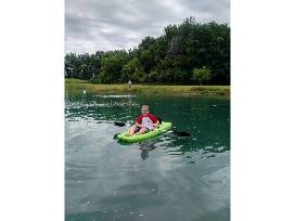 Hang out by the 1 acre pond with small sandy beach where you can fish, swim, kayak, build sand castles, play games, grill & so much more!