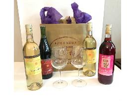 Great gift bag of Alexis Bailly wines and glasses. This includes 4 bottles of wine, 2 engraved glasses, One Year Wine Club membership (2 shipments - 6 bottles each) and a carry bag from the award winning Alexis Bailly Winery. Did you know Alexis Bailly is the oldest winery in Minnesota and a pioneer in growing quality grape vines in our colder climate? The great tasting wines in this package include 2 whites and 2 red. They are Seyval Blanc, LaCrescent, Leon Millot, and Toumie's Tank Rose. These are sure to complement any meal you can dream up!