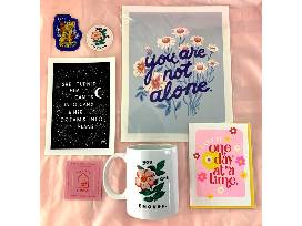 "By pairing bright colors and quirky hand lettering with deeper themes of mental health, self-care, and sociopolitical issues, I hope my work inspires others and brings comfort to those feeling like they're alone in their struggles."
