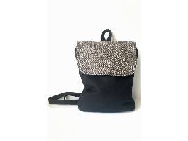 Made from: Waxed cotton canvas, vintage wool tweed, organic cotton/hemp fabric, nylon webbing, brass hardware.