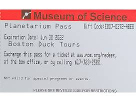 Four (4) Boston Duck Tour Passes & Four (4) Museum of Science Planetarium Passes